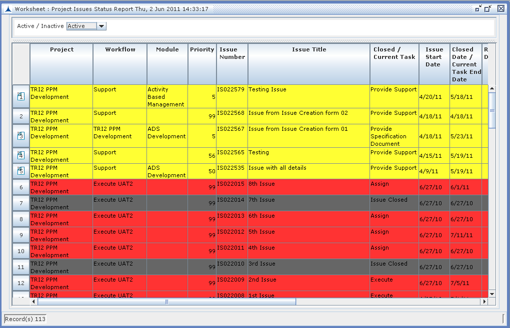 Active / Inactive: Status of the Issue whether it is active in the project or cancelled